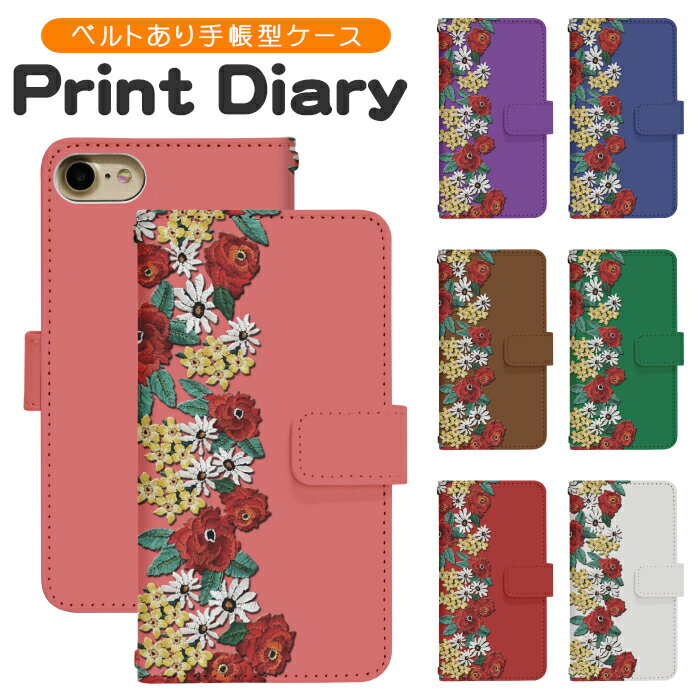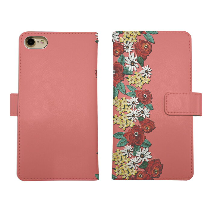 Galaxy S5 SC-04F ケース スマホケース 手帳型 花 フラワー 左利き スタンド 収納 カバー 携帯カバー ケース オーダー フラワー刺繍プリント AM_OD_MX