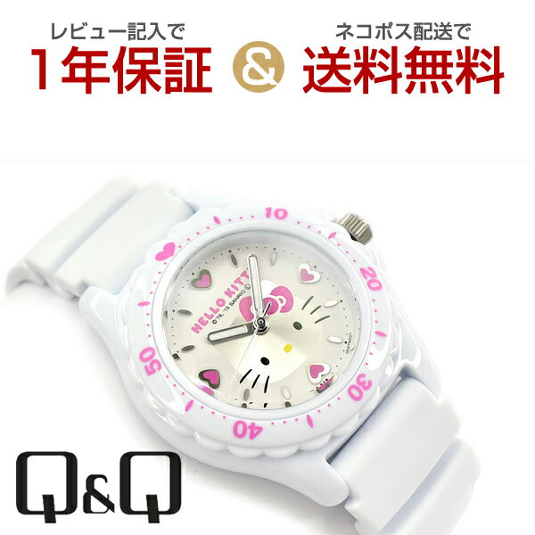 【ネコポス配送で送料無料】【レビューを書いて1年保証】シチズン CITIZEN Q&Q キューキュー HelloKitty ハローキティ 逆回転防止ベゼル レディース 腕時計 ホワイト × ピンク ウレタンベルト 0029N001