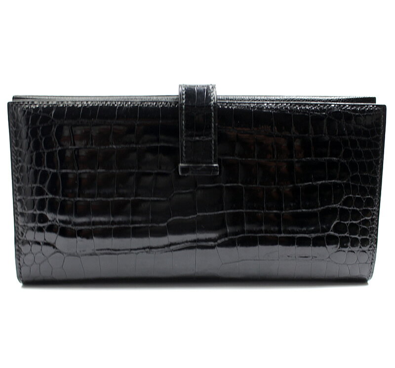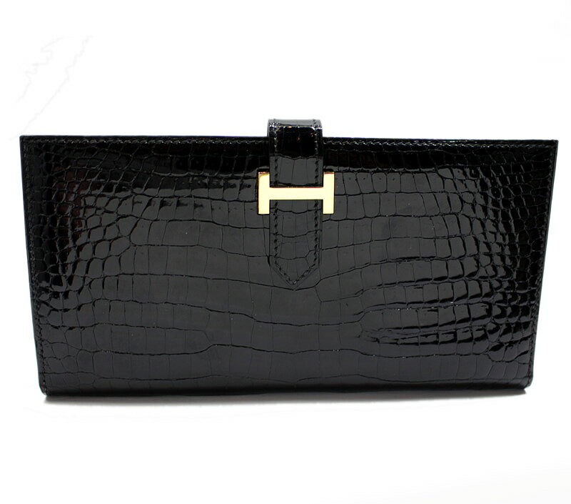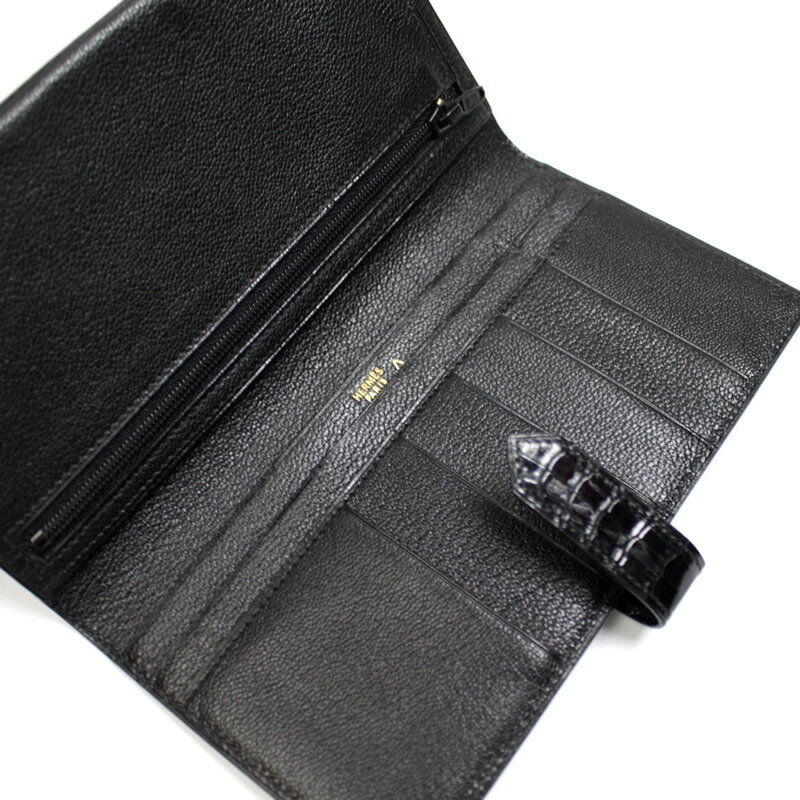 美品 エルメス ベアン クラシック 二つ折り クロコ 黒 ゴールド金具 長財布 ○Z刻印【中古】29